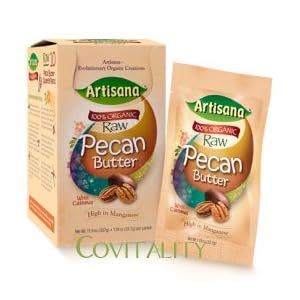 Smooth texture, fresh aroma, and most importantly, deep, complex taste make this puree of organic, raw pecans and cashews a profoundly satisfying concerto of sensory pleasures. Each 11.9 ounce box contains 10 packets. Invigorate your palate with the rich, intense flavor of Artisana pecan purée. Smooth texture, fresh aroma, and most importantly, deep, complex taste make this a profoundly satisfying concerto of sensory pleasures. Every spoonful is a healthy treat; alone or added to shakes. The Native American Indians made pecan milk by pounding the nuts with a mortar and pestle before adding water and stirring them into a nourishing beverage. Pecan milk was an ideal energy food for their infants as well as the elders because it was so easy to digest. Today, medical researchers give pecans the thumbs-up for their ability to lower cholesterol when small amounts are included in the diet on a regular basis. Scientists exploring the beneficial properties of pecans discovered they are a concentrated source of plant sterols known to lower cholesterol n addition, pecans contain phytochemicals that offer antioxidant protection from many diseases such as heart disease, diabetes, and cancer. They also have a high percentage of monounsaturated fatty acids, mainly oleic acid, which is credited with lowering LDL cholesterol while not affecting the HDL. Pecans also contain more than 19 different vitamins and minerals, including zinc and iron, and are good sources of vitamin E, potassium, and magnesium. Artisana's Raw Pecan Butter is handcrafted from fresh (not roasted) nuts, and is made into butter using a low-temperature process (below 115° F.) that preserves the vital enzymes, vitamins, and proteins. It is made from 100% certified organic nuts, with no preservatives or other additives, in a facility that does not process any peanut, gluten, or dairy products.